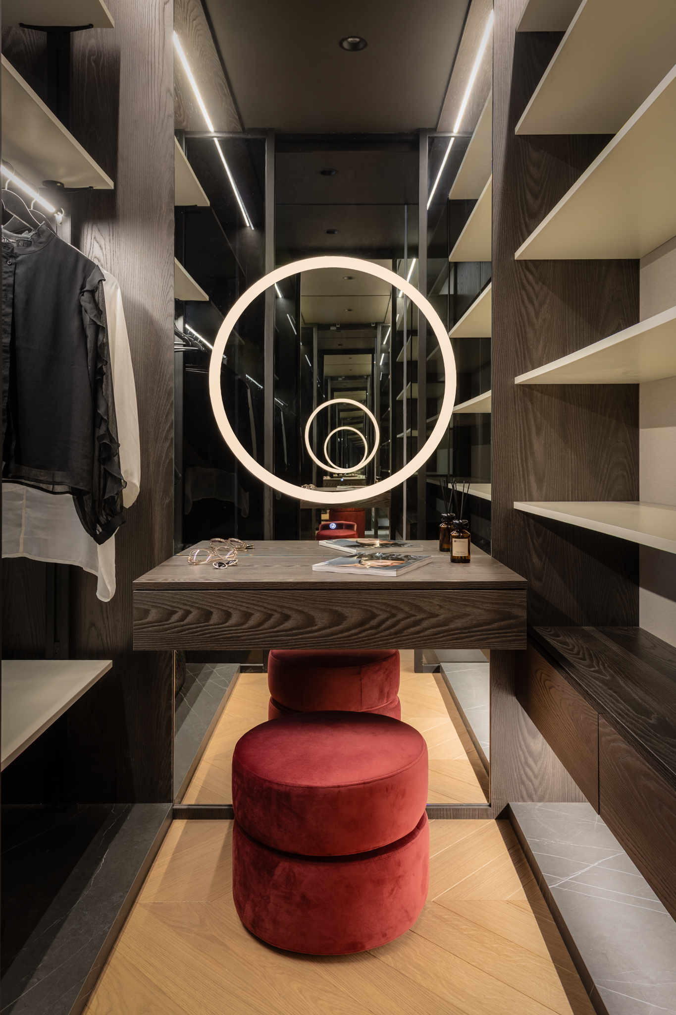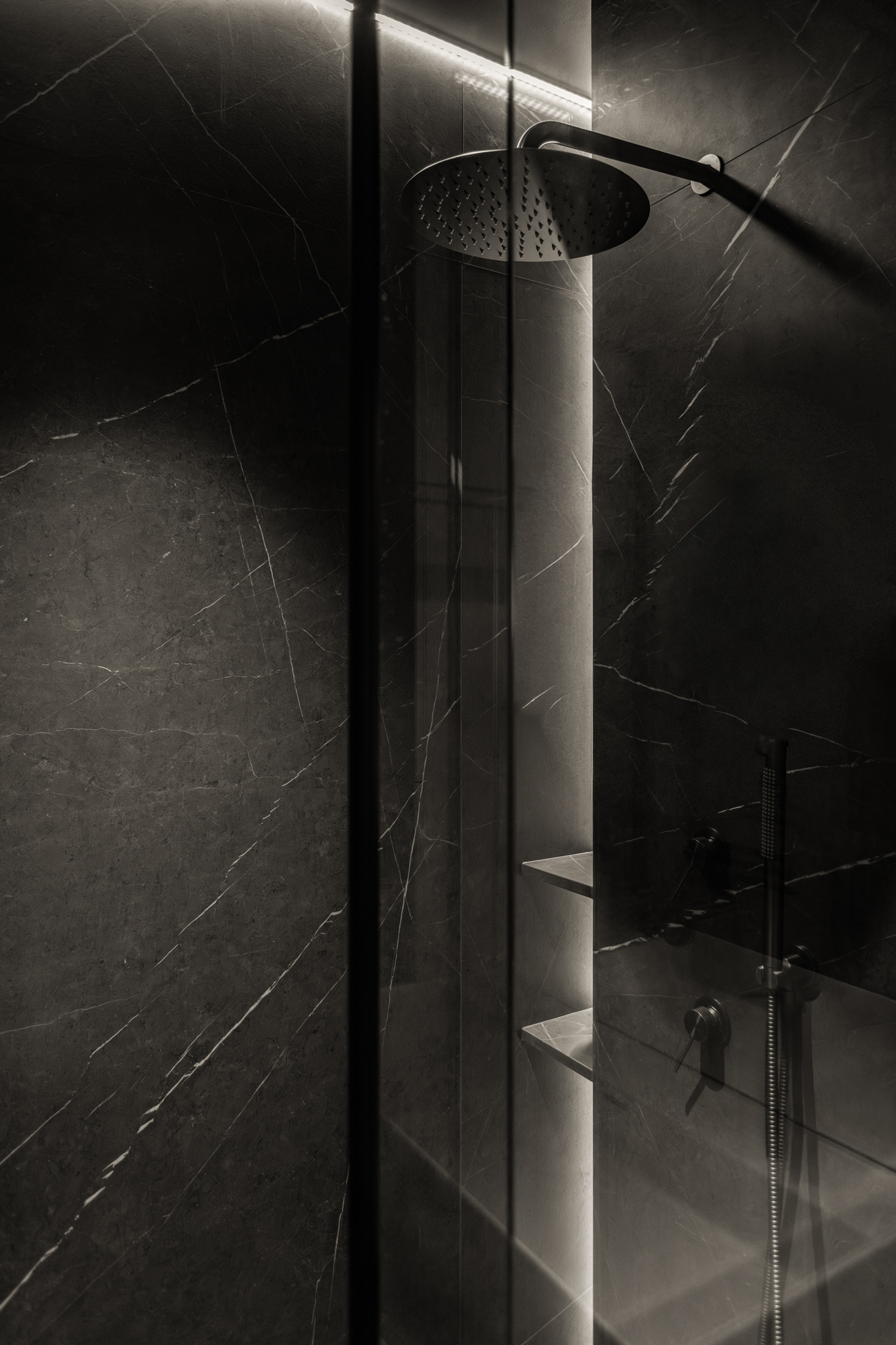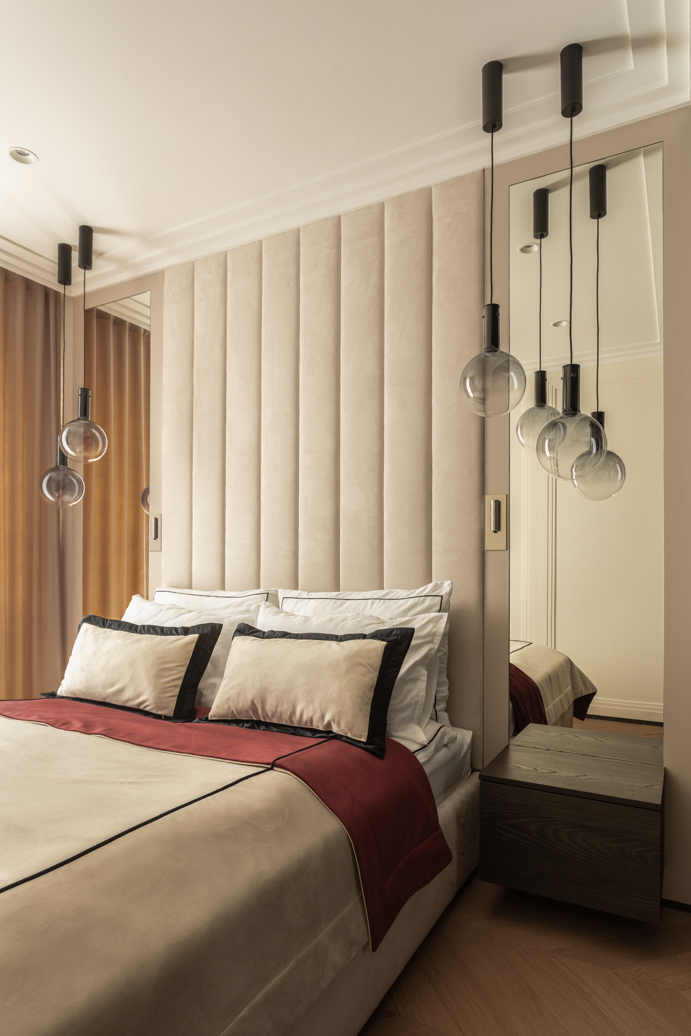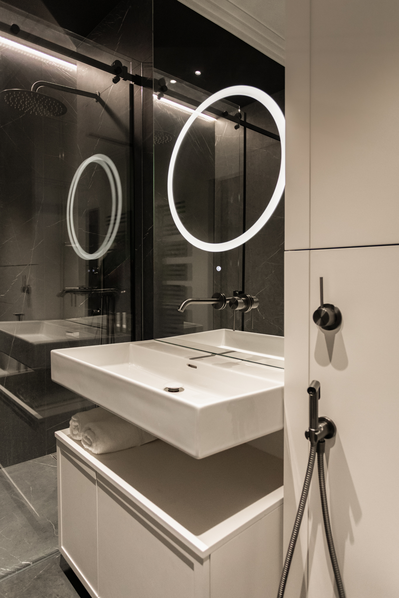 Mieszkanie o powierzchni 49m² znajduje się w zabytkowej kamienicy na warszawskim Starym Żoliborzu. Głównym założeniem projektowym było zachowanie subtelnego dialogu pomiędzy przeszłością, a teraźniejszością. Wnętrze mimo współczesnego charakteru zachowuje klimat zabytkowej kamienicy za sprawą sztukaterii zdobiących ściany i sufity. Przeprowadzony w mieszkaniu gruntowny remont obejmujący między innymi zmianę układu ścian działowych i instalacji pozwolił przeorganizować przestrzeń wydobywając tym samym w pełni potencjał mieszkania. Zastosowane w projekcie naturalne materiały takie jak kamień i drewno wprowadzają do wnętrza autentyczność. Stonowana paleta barw obejmująca biele, beże, brązy i czernie buduje we wnętrzu harmonijną i ponadczasową elegancję. Minimalistyczna kreacja mieszkania została przełamana bordowymi akcentami, które nadają wnętrzu wyrazistego charakteru.